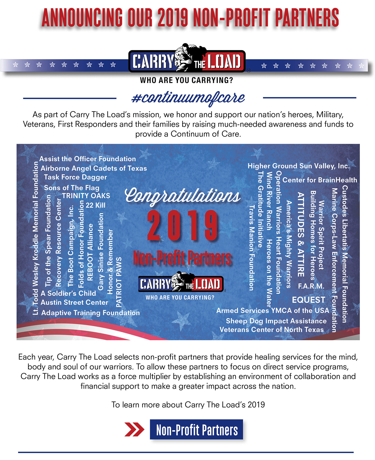 Custodes Libertatis Memorial Foundation is grateful to be named a Carry the Load Nonprofit Partner for a 6th consecutive year.